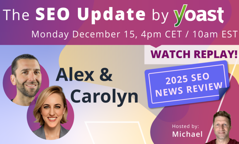 هل تريد الانهيار الكامل؟ سيتم إصدار منشور ملخص تحسين محركات البحث لعام 2025 الخاص بنا الأسبوع المقبل. استمع أيضًا إلى كارولين وأليكس وهما يشاركان أفكارهما في تحديث تحسين محركات البحث (SEO) لشهر ديسمبر بواسطة Yoast على YouTube.