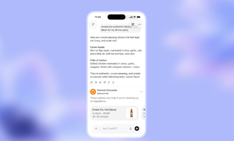 شاركت OpenAI مثالين لأشكال الإعلانات التي تخطط لاختبارها داخل ChatGPT.